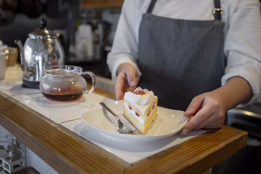 - 特寫切面:切一塊蛋糕下來,特寫那個鮮奶油與內餡的切面,看起來最誘人、最好吃!